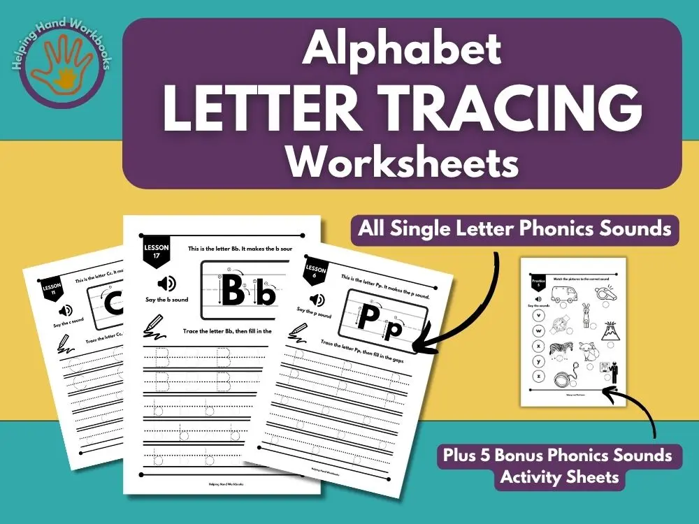 These fun Letter Tracing Worksheets allow your child to practice tracing each individual letter of the alphabet as well as sounding out their related phonics sounds.