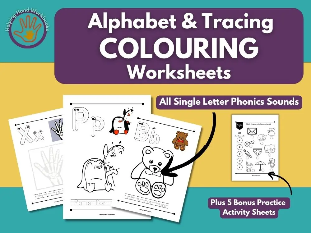 Fun, printable letter tracing and colouring worksheets for ages 3–5! Helps with letter recognition, phonics, handwriting, and fine motor skills – with 5 bonus activity pages included.